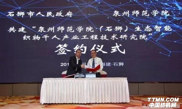 論壇上,石獅市委常委、市政府副市長陳宏、泉州師范學院校長屈廣清分別代表石獅市人民政府 泉州師范學院簽訂共建“泉州師范學院(石獅)生態智能織物千人產業工程技術研究院”項目合約。 石獅紡織服裝產業聯盟和法國設計師協會達成戰略合作伙伴關系。