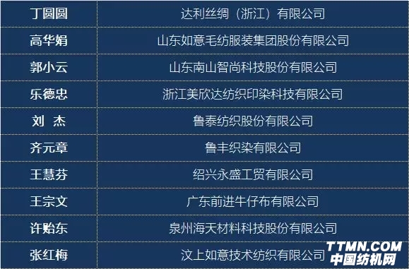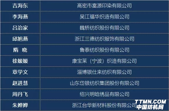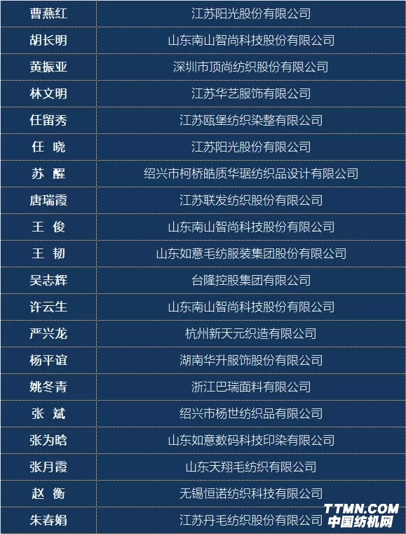 經(jīng)全國十佳紡織面料設計師及培養(yǎng)先進單位評委會對申報人和申報企業(yè)(單位)的資格審查、初評、公示和終評,現(xiàn)決定授予達利絲綢(浙江)有限公司丁圓圓等10名設計師“金梭獎”第五屆全國十佳紡織面料設計師榮譽稱號;授予高密市富源印染有限公司吉海東等10名設計師“金梭獎”第五屆全國優(yōu)秀紡織面料設計師榮譽稱號;授予江蘇陽光股份有限公司曹燕紅等20名設計師“金梭獎”第五屆全國入圍紡織面料設計師榮譽稱號;授予江蘇丹毛紡織股份有限公司等5家單位“金梭獎”第五屆全國紡織面料設計師培養(yǎng)先進單位榮譽稱號;授予紹興市柯橋區(qū)科學技術局“金梭獎”第五屆全國十佳紡織面料設計師及培養(yǎng)先進單位推動貢獻獎榮譽稱號。