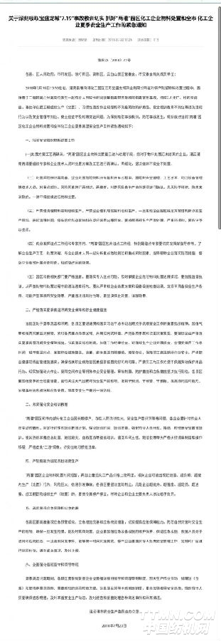 染料集聚區(qū)發(fā)生死亡事故:2018年7月19日14時(shí)左右,灌南縣堆溝港化工園區(qū),江蘇寶盛龍城藥業(yè)有限公司在對(duì)停產(chǎn)殘留物料處置過程中,西咪替丁二縮物離心分離崗位發(fā)生一起中毒窒息事故,造成2人死亡。有業(yè)內(nèi)人士指出:這起事件或?qū)?yán)重影響整個(gè)蘇北地區(qū)復(fù)產(chǎn)進(jìn)度。