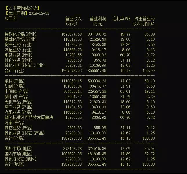 只是,作為一個(gè)染料龍頭企業(yè),在主營(yíng)業(yè)務(wù)方面,似乎并沒有讓人們感到眼前一亮的感覺。