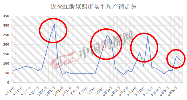 在原料市場強勢上沖的刺激下,大部分織造廠家或多或少都有采購動作,這從產(chǎn)銷方面也可以看出,近幾日聚酯市場產(chǎn)銷持續(xù)超百行情。26日隨著PTA期貨大幅上漲,聚酯產(chǎn)銷迎來一波小爆發(fā),當(dāng)日聚酯產(chǎn)銷上升至160%上下,27日依然偏高運行在120%附近。