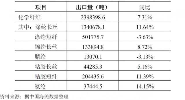從化纖出口方面來看,1~6月,我國化纖出口240萬噸,同比增長7.31%,增速比上年同期提高0.43個百分點。但受中美貿易戰的影響,我國對美出口化纖同比減少37%,占出口總量比例下降3.4個百分點。