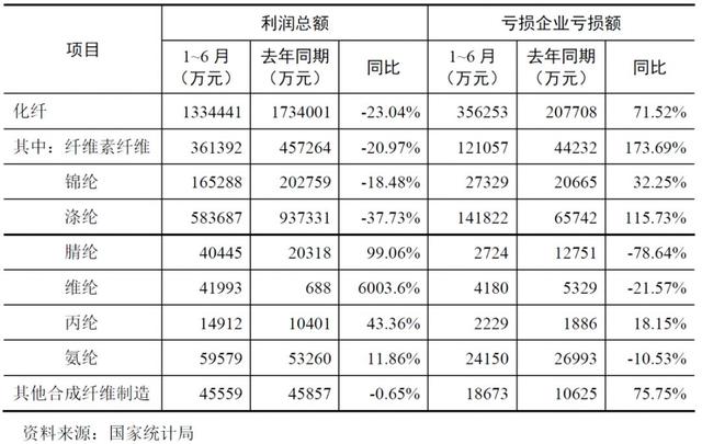 國家統計局數據顯示:1~6月,化纖行業主營業務收入4287億元,同比增長7.1%;實現利潤總額133億元,同比減少23%;行業虧損面達26.52%,同比加深了4.6個百分點,虧損企業虧損額大幅增長71.5%;營業收入利潤率為3.11%,同比下降1.22個百分點。