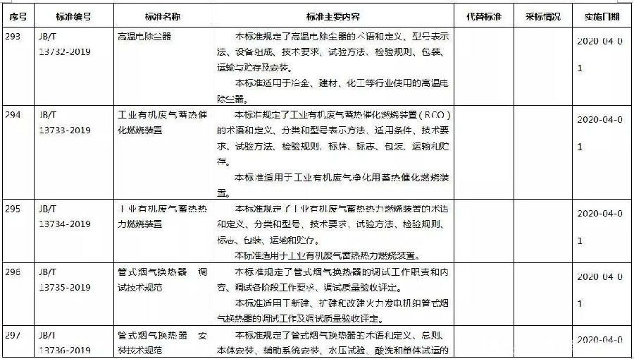 日前,工信部發(fā)布2019年第29號公告,批準《銅鋅合金粉》等436項行業(yè)標準,其中涉及高溫除塵器、煙氣換熱器、蓄熱式催化燃燒裝置等環(huán)保標準。