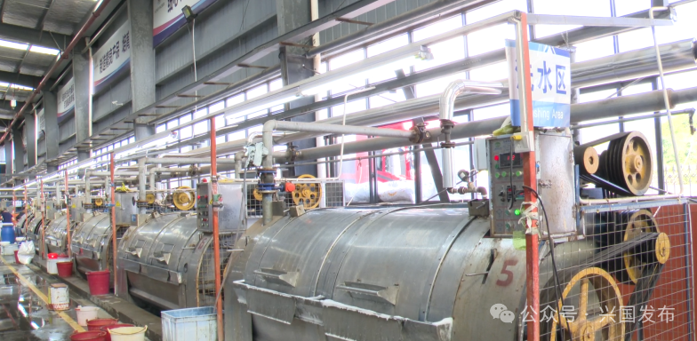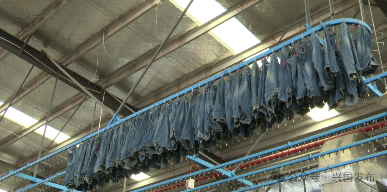 在推動產業智能化改造,引導生產線迭代升級的同時,興國縣又著力延伸紡紗、織造產業,完善配套產業鏈條。并通過引進從事服裝智能洗水、環保印花、布料整理加工等產業的公司,填補了當地牛仔服裝產業在服裝洗水方面的空白,為企業降本增效。