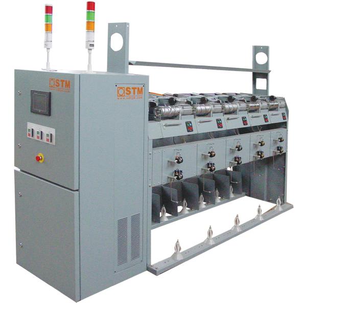 TS008電腦型高速大卷裝絡筒機,適用于化纖、棉紗、工業長絲、低彈絲、拖把線,卷繞成圓錐形或柱形,供下道工藝使用,成形較好,工作效力高,無塌邊現象,TS008型自動高速機能減輕下道工藝的勞動強度,適應高速生產。
