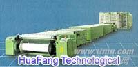 漿絲機是經絲準備工程的重要工序,漿絲的目的在于上漿的手段,改善經絲的織造性能,使經絲在織造時經受各種外力作用,順利地與緯絲交織成優質織物。   隨著織機織造速度不斷提高,就必須有高品質的上漿系統來滿足織造行業的需求。華方科技在多年研究和發展高品質整經機的基礎上,為滿足現代織造行業的需求,研究開發了HFGS漿絲聯合機組。   主要技術參數: 1.HFGS漿絲機 1.1 最高線速度: 250m/min 1.2 盤片直徑: φ650、φ800、φ1000mm 1.3 經軸有效幅寬: 1800mm 1.4 最大上絲根數: 1800根 1.5 最大上漿與烘干寬度: 1800mm 1.6 轉動和伸長控制: 多節傳動+張力反饋 1.7 上漿方式: 單浸雙壓式 1.8 壓漿輥結構: 均勻壓漿 1.9 最大壓漿力: 8KN 1.10 烘干方式: 熱烘房+錫林 1.11 卷取張力控制范圍: 80-500N 1.12 上下落軸: 氣動 1.13 蒸氣壓力: 0.7MPa 1.14 裝機功率: 28.8KW 2.HFGB并軸機 2.1 最高線速度: 150m/min 2.2 織軸盤片直徑: φ650、φ800、φ1000mm 2.3 織軸有效幅寬: 1350-1900mm 2.4 卷取張力范圍: 300-5000N 2.5 上下落軸: 氣動 2.6 裝機功率: 18.5-37KW(選配) 2.7 經軸架個數: 6-10個(選配) 2.8 上機經軸盤片: φ650、φ800、φ1000mm 2.9 上機經軸有效幅寬: 1800mm 2.10 上機經軸張力控制方式: 配重式 2.11 上機經軸張力控制范圍: 100-400N