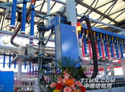 青島環球集團研制的CMT1801全自動落紗粗紗機,今天精彩亮相上海第十五屆紡機展,獲得了眾多的參觀者圍觀。