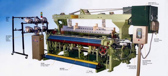 送徑: 半積極外側(cè)式機(jī)械送徑,備有三后梁經(jīng)紗漲力控制機(jī)構(gòu),經(jīng)軸盤片直徑φ550或φ400毫米。
