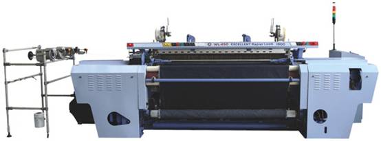 技術指標: 門幅:190,230cm 車速:400-450轉/分 引緯:無導鉤式的金屬劍頭和碳纖劍帶,單側供緯,中間交接雙側劍頭引緯 打緯:采用共軛凸輪打緯 選色:6色或8色電子選色 開口:電子多臂,機械多臂,16片、20片綜 送經:電子送經 卷取:電子卷取 功率:主電機:5kw