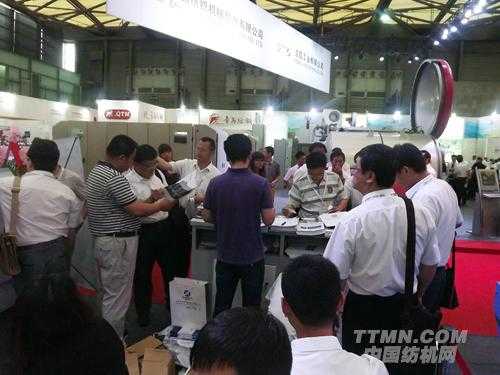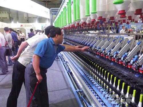 客戶正在經(jīng)緯紡機展臺前參觀咨詢