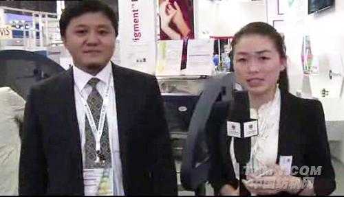 【TTMN訊 (攝像:劉克超 記者:劉曉玲 編輯:亢重陽)】kronit digital bonding matters主要是從成衣印花開始起家。在2003年開始推出我們的第一款最經典的機器921,這臺機器運用了獨創的內置的墨水和粘合劑一體化的系統,可以在同一塊深色面料或者淺色面料衣服上面打印出非常唯美的數碼的圖案。這是比較特殊化的機器。它使用的是工業化的噴頭,包括一個工業化的系統。