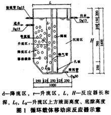 循環(huán)移動載體生物膜反應器是對傳統(tǒng)移動載體生物膜反應器進行改良后的一種新型工藝。在本工藝中,表面附著生物膜的填料在反應器內循環(huán)移動,使水流與填料充分接觸,消除死角與溝流,達到高效處理有機廢水的目的。該工藝具有生物量高、能連續(xù)運行、無堵塞且不需反沖洗等特點。作為好氧生物污水處理工藝,氧轉移效率的高低直接影響著反應器的處理效率和能耗的高低,對本工藝而言,反應器的結構和操作參數(shù)對反應器的充氧能力有著直接、關鍵的決定性作用。本文結合模擬反應器實驗數(shù)據(jù),在理論分析的基礎上探討了合適的反應罪結構和操作參數(shù)的選取范圍。