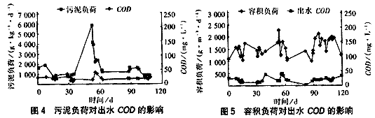 由于MBR出水水質(zhì)穩(wěn)定,所以其動力學(xué)參數(shù)COD污泥負荷和容積負荷隨進、出水的COD 濃度變化而變化,MBR中COD容積負荷、COD污泥負荷的變化分別為0.83~2