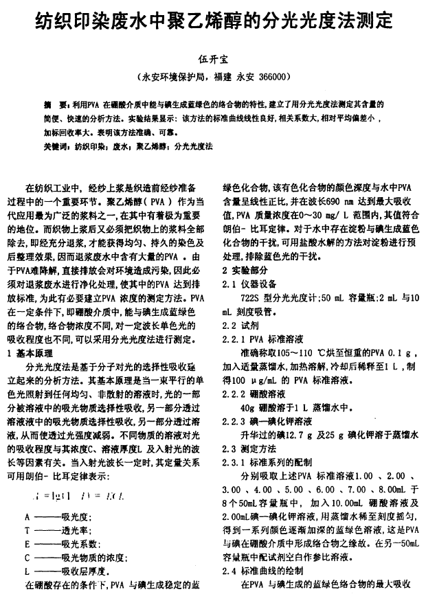 紡織印染廢水中聚乙烯醇的分光光度法測定