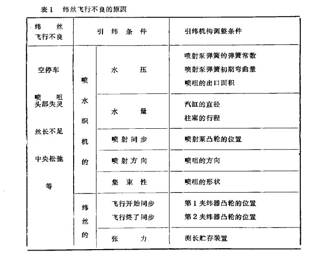 所以當(dāng)上述引緯機(jī)構(gòu)發(fā)生緯絲飛行不良時,可參照表l所示引緯機(jī)構(gòu)調(diào)整條件,和引