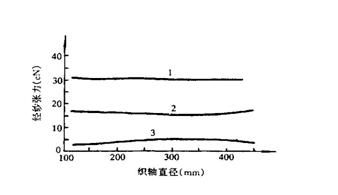 織軸送出經(jīng)紗,其直徑不斷減小,在張力調(diào)節(jié)裝置尚未作出響應(yīng)之前,經(jīng)