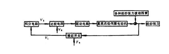 圖10-16? 電子送經(jīng)機(jī)構(gòu)的經(jīng)紗張力控制原理