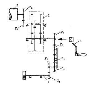 Z3、Z4、Z5——變換棘輪3、蝸桿4、蝸輪5的齒數;