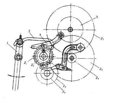 改變變換齒輪Z2、Z3的齒數,可以實現織物的緯密調節。