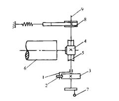 在緞條手帕等織物生產時,為產生一段緯密較大的織物,要求卷取機構有時停止卷取。在織機上,通過杠桿、吊鏈等有關的機構,使棘爪2抬起,可以實現停卷的目的。因此,這是一種由機械控制完成時而等量卷取、時而停卷的卷取量可變的卷取機構。