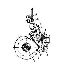 圖9-7? Sulzer片梭織機上的共軛凸輪式打緯機構