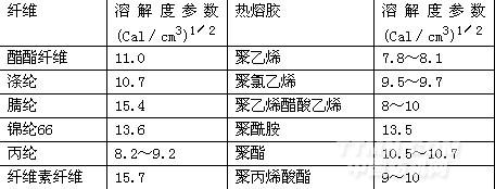 表3.纖維和熱熔膠的溶解度參數(shù)