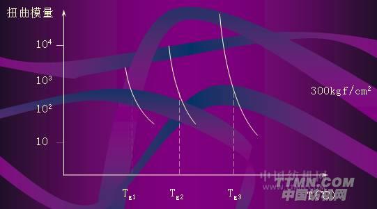 試驗(yàn)表明,不同粘合劑的扭曲模量與溫度的關(guān)系是一組近似平行的曲線,而且扭曲模量為300kgf/cm2時(shí)對(duì)應(yīng)的溫度和粘合劑的玻璃化溫度非常接近。因此,難以測(cè)量的玻璃化溫度,可通過(guò)測(cè)扭曲模量為300kgf/cm2時(shí)對(duì)應(yīng)的溫度來(lái)獲得。通常: