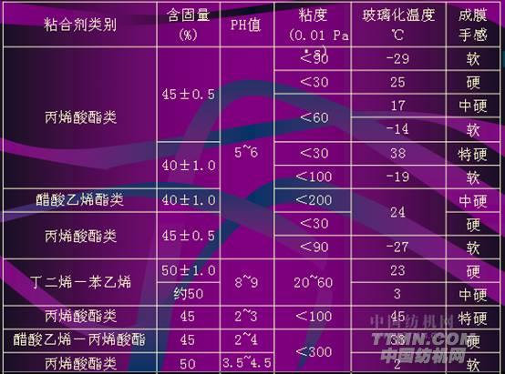 非織造材料常用粘合劑絕大多數為分散型粘合劑,即乳液或乳膠,大多采用浸漬法,也可用于噴灑法或泡沫法。粉末型粘合劑(熱熔膠)則主要用于熱熔粘合襯。而低熔點纖維則作為熱粘合法中的纖維型粘合劑,已在第六章中作了詳細介紹。