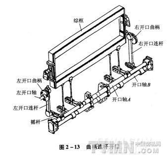 開口機構是織機五大機構之一,是形成織物所必需的重要機構。它的任務是根據織物組織的要求,依次將穿入各頁綜框上的經紗分成上下兩層以形成梭口,待緯紗引入后將梭口閉合,使經、緯紗形成交織狀。
