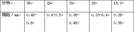 清紗板隔:它是清紗器的一個重要參數,過大時則粗節和紗圈漏過,過小時紗線易被刮毛,斷頭多;一般清紗隔距為紗線直徑的1.5-2.5倍