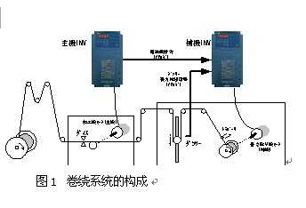 其基本構成情況如圖1的卷繞系統所示那樣,把多臺變頻器直接地互相連接,把張力架的張力予以反饋并設定好卷繞功能,即能實現各種豐富多彩的卷繞控制。