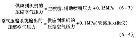 供應噴氣引緯系統的壓縮空氣應有恒定的供氣壓力,各個供氣環節的氣壓由壓力閥進行調節,以主噴嘴、輔助噴嘴的供氣壓力(0.3-0.4MPa)為計算依據,各供氣環節的壓力計算: