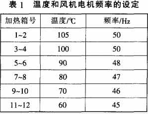 為了盡可能改善絲光色紗手感和柔軟性.采用較低溫度和慢烘干 工藝.設(shè)定溫度自進(jìn)口端遞減 由 于濕紗在烘箱中經(jīng)歷從濕態(tài)至干 態(tài)的變化.故從保證紗線不吹亂 和節(jié)能兩方面考慮.當(dāng)所用烘箱 配置風(fēng)機(jī)電機(jī)變頻器時.應(yīng)按前 后箱號從高至低設(shè)定不同轉(zhuǎn)速 具體溫度設(shè)定和風(fēng)機(jī)電機(jī)的頻率 如表1所示