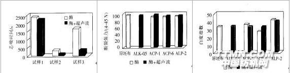 (2)酶加超聲波處理,兩種試驗都可顯著改進酶的性能,即潤濕性都可顯著改善。