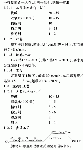 摘要:針織物活性染料印花對印坯的前處理要求較高,如煮練勻透,去堿凈,毛效高。介紹了三種前處理煮練工藝:冷軋堆、溢流機前處理和松式繩狀練漂聯合機前處理,可適用于不同批量和印花花型。針織物活性染料印花比涂料印花的前處理要求高。后者采用不溶性顏料藉粘合劑成膜而緊密地粘著在纖維上,對布面具有很強的遮蓋性;而前者則采用活性染料與纖維素纖維發生化學反應,以共價鍵結合在纖維上,若針織物前處理去油不凈,煮練不透、不勻和去堿不凈,印花時就會出現布面白斑、發花和不勻條子等問題?;钚匀玖厢樋椢镉』〞r,染料只有在蒸化的幾分鐘內移染,并完成固色。因此,活性染料印花的前處理要求與涂料印花和浸染不盡相同,要求前處理煮練勻、透,毛效高,去堿凈。l 前處理工藝織物l8 tex(32 )汗布工藝流程縫頭一(燒毛一)煮練一漂白一(絲光一)定形燒毛目的是去除布面上的茸毛,使布面光潔美觀。若客戶要求布面帶有絨感,可不燒毛。煮練的目的是去除棉纖維中的果膠質、蠟質、灰分和棉籽殼等雜質,使織物獲得良好的外觀和吸水性。漂白的目的在于提高織物的白度。絲光的目的足提高織物對染料的吸收能力和尺寸穩定陛,降低縮水率,并獲得耐久性光澤。我公司目前沒有針織絲光機,所以對煮漂過程采取了加強T藝,用MON—FONGS 38—.gif)