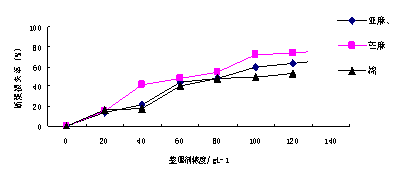 | 圖1 亞麻、苧麻及棉織物回復角與整理劑濃度的關系 |