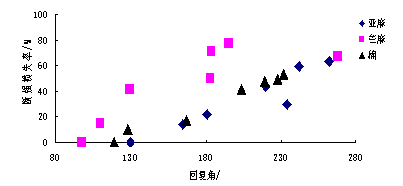 | 圖3 亞麻、苧麻及棉織物斷裂強度與回復角的關系 |
