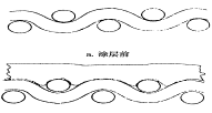 而當織物經(jīng)涂層整理后,織物中的紗線被粘著,同時部分涂層料嵌入織物內部(見圖一,二),