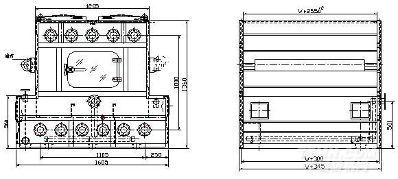 箱體結(jié)構(gòu):墻板3毫米不銹鋼材料,另附加強(qiáng)筋型式安裝中心距W+300;