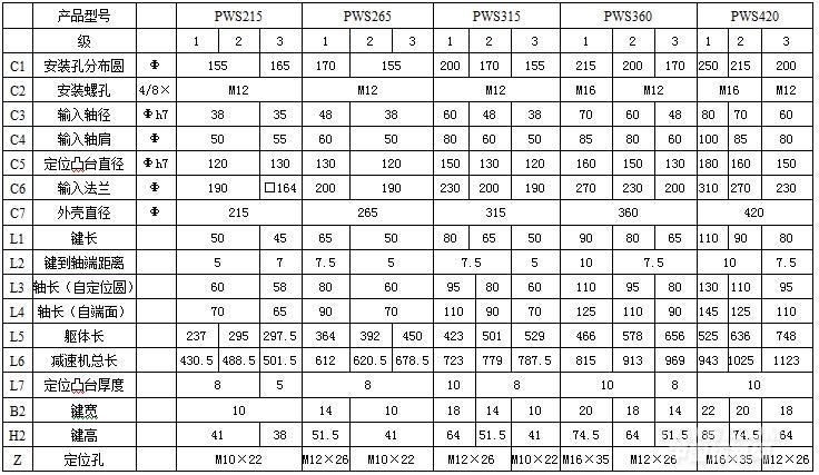 特點:雙軸、輸入輸出端均為軸連接。可使用在一些可逆的情況下,輸出扭矩大,效率高 應用領域:風力發電、試驗機和測試儀器等其他等行業 技術參數:外形尺寸:215mm---420mm 減速比: 4---512 傳遞力矩: 1000Nm---27500Nm 安裝方式: 任意安裝