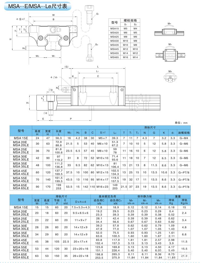 PMI線性滑軌尺寸表