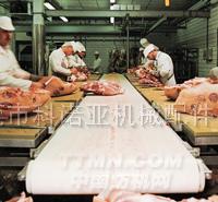 在肉類和家禽類的加工過程中,因為需要在輸送上進行切割,所以對皮帶的耐切割有著極高的要求。 您可以選擇耐熱水,易清洗的PU涂層皮帶,還可選擇耐油和油脂的使用壽命長的PVC涂層皮帶。