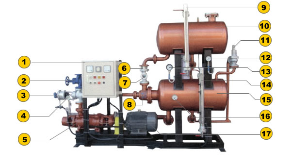 | |  | 整機全部采用高級組件一體組成,設計精巧、不需加裝任何輔助配備。 |  | 葉輪皆經動態平行試驗(Dynamic Balance Test) 。 |  | 設有飽和加壓裝置,采用穩定安靜,無空洞現象(Cavitations)發生。 |  | 采用高感度儀控制系統,感應精確,安全性特佳。 |  | 設有安全給水控制系統,避免起機時之凝結水大量回收,造成鍋爐過量給水發生意外。 |  | 機型多適用范圍廣,一般大小之鍋爐均能使用。 |  | 重要部分全采用高級組件所組成,安裝后可長期安心使用。 |  | 強制將凝結水吸回回收槽,完全沒有凝結水積存,升溫效率大幅提升。 |  | 凝結水不會積存在設備,沒有水錘現象,可延長設備使用年限。 |  | 價格低廉,售后付有保證卡,定期免費保養。 | | | 密閉式統一回收系統 | | 凝結水回收再使用,是今日能源節約呼聲中,最有效的途徑。一般工廠回收冷凝水 | | 再利用,都僅限于開放式簡易回收之達成,且高壓凝結水所生成的再生蒸汽末能善加 | | 利用,任其散至大氣,這些能源的浪費都是顯易見的。 | | | 因此,辰宇特別研發新型“密閉式”之回收系統,使高壓凝結水所生成的再生蒸汽 | | ,均可統一回收泵入鍋爐中,此一方法回收效益極高,可使整廠達到節約能源最適化 | | 與最經濟之回收。 | | 使用雙槽自吸密閉式冷凝水回收泵浦,可產生的經濟效益分析如下: | 假設條件: | 內 容 | 參 考 值 | 內 容 | 參 考 值 | | 1 | 冷凝水回收量 | 5000 | (Kg/Hr) | 6 | 每日操作時數 | 24 | (Hr/Day) | | 2 | 預計冷凝水回收率 | 90 | % | 7 | 每月操作天數 | 26 | (Day/Mon) | | 3 | 鍋爐燃燒效率 | 85 | % | 8 | 重油發熱量 | 9840 | (Kcal/Kg) | | 4 | 冷凝水溫度 | 120 | ℃ | 9 | 重油價格 | 6800 | (NTD/KL) | | 5 | 鍋爐補水溫度 | 25 | ℃ | 10 | 鍋爐飼水處理費 | 0.01 | (NTD/Kg) | | | 計算公式: | 項目 | 運算式 | 運算結果 | | 每小時實際回收量(Kg/Hr) | 冷凝水回收量×回收率 | | = | 5000 × 90% | = | 4,500 | | 每年操作時數(Hr/Day) | 每日操作時數×每月操作日數×12月/年 | | = | 24×26×12 | = | 7,488 | | 每年冷凝水回收總量(Kg/Year) | 每小時實際回收量×每年操作時數 | | = | 4500×7488 | = | 33,696,000 | | 每年節省熱能(Kcal/Year) | 每小時實際回收量×(冷凝水回收溫度-鍋爐補水溫度) | | = | 33,696,000×(120-25) | = | 3,201,120,000 | | 考濾鍋爐效率的節省總熱能(Kcal/Year) | 每年節省熱能×鍋爐效率(%) | | = | 3,201,120,000×1.176 | = | 3,764,517,120 | | 每年節省重油用量(KL/Year) | 每年節省總熱能 ÷ 重油發熱量 | | = | 3,764,517,120 ÷ 9,840 | = | 382.573 | | 每年可省重油費用(NTD/Year) | 每年節省重油量×重油價格 | | = | 382,573×6,800 | = | 2,601,496 | | 每年可省水處理費(NTD/Year) | 每年冷凝水回收總量×水處理費 | | = | 33,696,000×0.01 | = | 236,960 | | 回收總效益(NTD/Year) | 每年可省重油費用+每年可省水處理費 | | = | 2,601,496+336,960 | = | 2,938,456 | | | 經濟效益  | 可節省20%以上的燃料油 |  | 節省大量清鍋費、水費及電費 |  | 節省大量水處理費用 |  | 增加熱傳速度,提高機器效率 |  | 爐內水溫差小,蒸汽壓力穩定 |  | 擔高鍋爐效率,延長鍋爐壽命 |