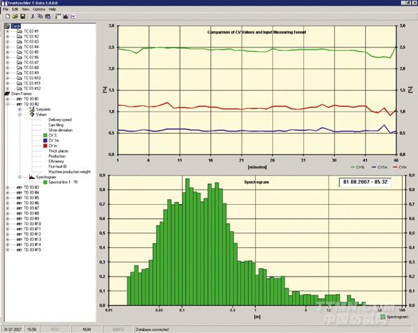 T-Data是特呂茨勒的數據管理系統,用于收集評估紡紗廠前紡工序數據。該機器控制的數個屏幕顯示大量的生產和質量數據。使用T-Data,將這些數據傳輸到一個超級坐標系進行評估、顯示和儲存的成本相當低。