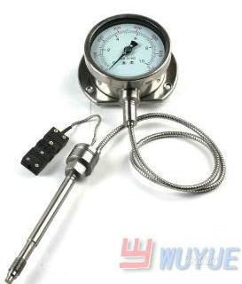 Pressure temperature dual measuring meter, based on which we extra install a temperature transmitter so that makes probes can measure two parameters at one point. Temperature transmitter equipped 4 kinds resistance: J,K,E or PT100BO