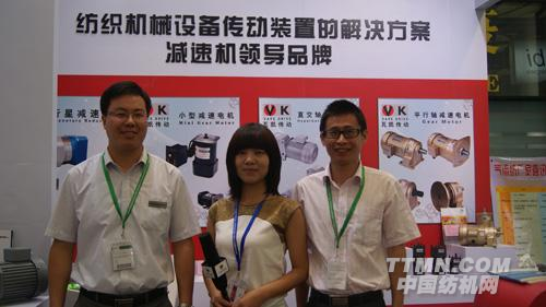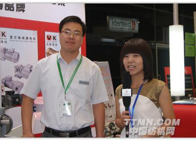 我們現在最主要的就是跟日企做一個比較,比方說減速機從訂貨到交貨,都是有我們自己的一個優勢。比如這款減速機,在日本的訂貨交貨周期是45天到60天,而我們的這個周期是15天到20天。另外成本方面比使用日企產品也有較大的競爭力。現在我們這款產品主要是做推廣,運用于化纖、棉紡、清疏聯生產線、后整理。后整理它將是以后運用的最大的市場,所以通過這次展會上對這款產品的認識和了解,客戶的反響還是蠻好的。我們希望通過這次展會推廣這款產品,能在紡機行業提高它的市場份額,提高我們產品在行業里的知名度,為我們國內的紡織行業提高效能的同時降低成本。今天非常感謝中國紡機網TTMN.COM的采訪。好!謝謝!