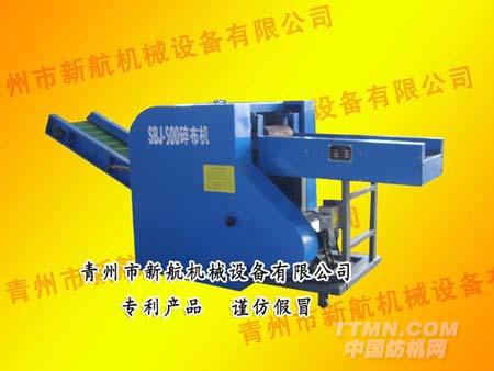青州市新航機械設備有限公司自主開發具有獨立知識產權的主要產品SBJ系列旋轉扭刀式纖維切斷機(又名碎布機、短切機、剁線機、碎布塊機、破布機等)。本機廢除傳統往復式直刀板,應用國際領先斜旋扭式滾動刀與定刀切合點移動剪切設計,實現連續高速剪切。產品設計先進,外形美觀,經濟實用,控制靈敏,剪切利落徹底。并已獲得國家專利(外觀專利號:200830163085.0 實用新型專利號:200820025018.7)