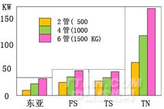 ▼染色機廠家品牌容布量和耗電量比較 ( 單位:KW )