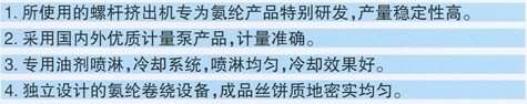 本公司生產(chǎn)的氨綸設(shè)備,經(jīng)公司多年研究和探索,產(chǎn)品具有生產(chǎn)速度穩(wěn)定,絲錠成品質(zhì)量好的特點(diǎn)。